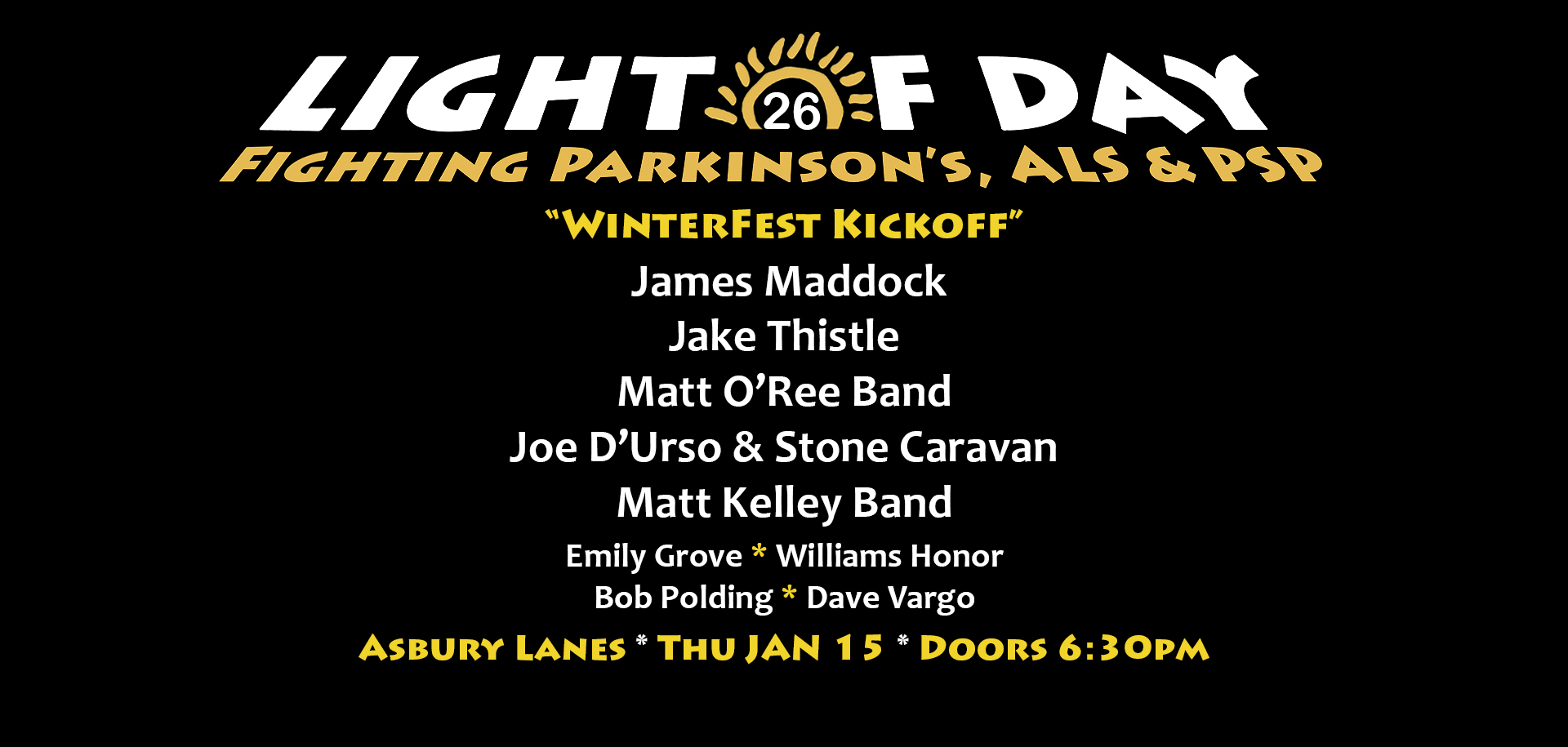The Light of Day Foundation, a registered NJ 501c3 charity organization utilizes the awesome power of music to raise money and awareness in its quest to end Parkinson’s disease and its related illnesses ALS (Amyotrophic Lateral Sclerosis) and PSP (Progressive Supranuclear Palsy) within our lifetime. We award grants to fund research and education, to improve therapies and to provide support for those who suffer from these diseases and their caregivers.