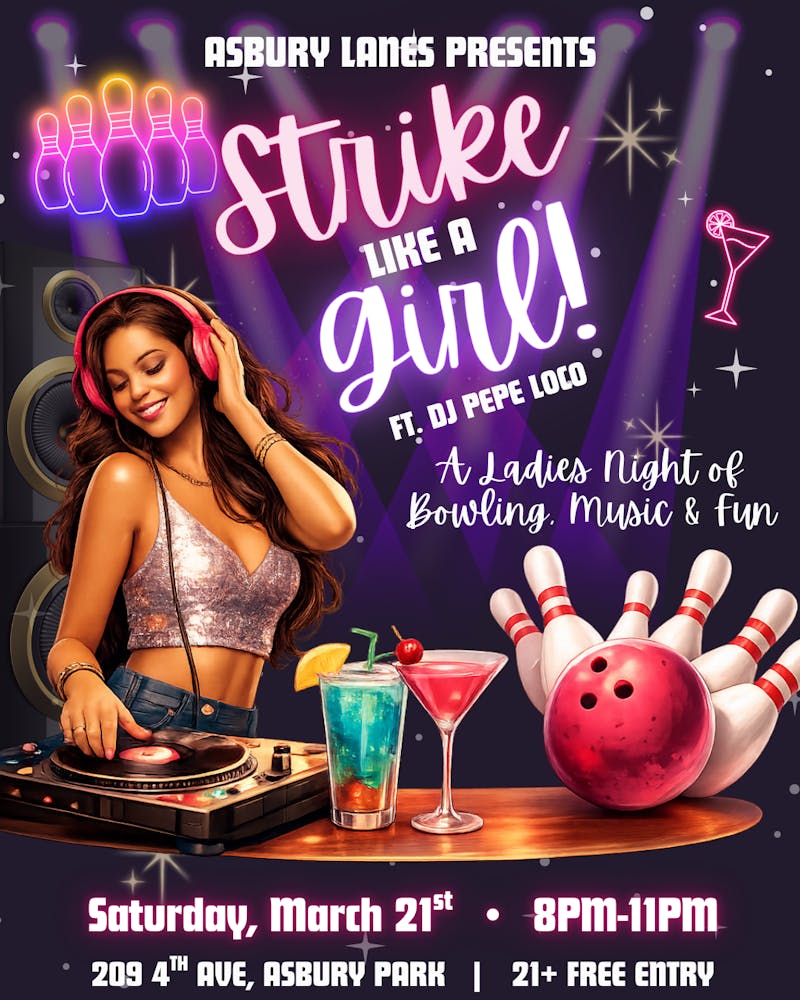 Roll in for a high-energy night at Asbury Lanes as DJ Pepe Loco takes over the booth with a dance-ready set while the lanes stay open all night. Grab your crew, lace up your bowling shoes, and hit the bar between frames - this is your Saturday night soundtrack for strikes, spins, and good times. Bowling lanes open